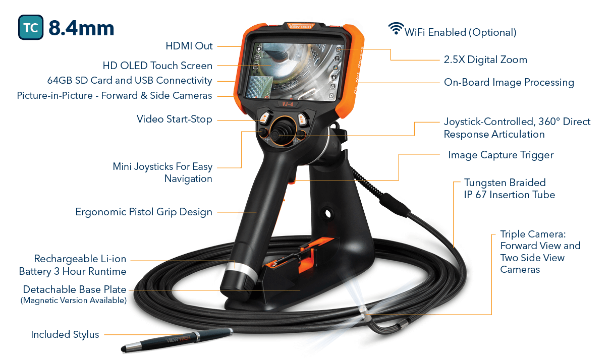 Introducing the New 8.4mm Articulating Triple Camera VJ-4 Video Borescope